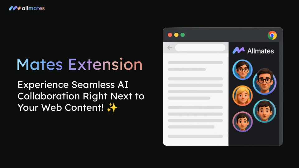 The future of AI collaboration has officially broken free from the single-tab limit. We are thrilled to announce the launch of the allmates.ai Browser Extension, a revolutionary update that fuses your daily web browsing with the collective intelligence of your Mates.