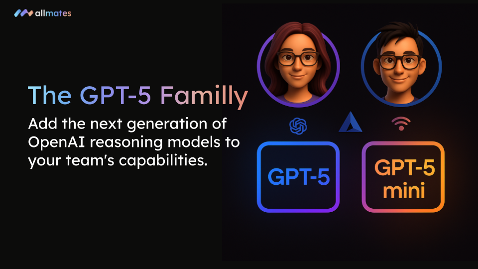 We are excited to announce that OpenAI's highly anticipated GPT-5 model system is now available for your Mates on the allmates.ai platform. This integration provides you with a powerful new option for tackling your most complex challenges, offering a new level of intelligence and reasoning.