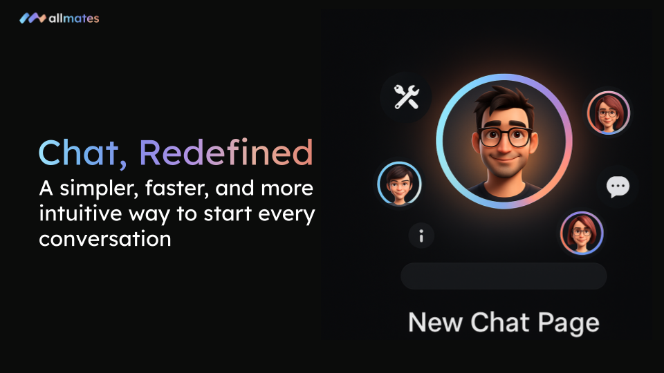 Weโ€™re thrilled to roll out a major overhaul of our chat interface, designed from the ground up to make your interactions on allmates.ai faster, more intuitive, and incredibly fluid. We've streamlined the entire process of starting, managing, and organizing your conversations, ensuring you get from thought to collaboration in record time.